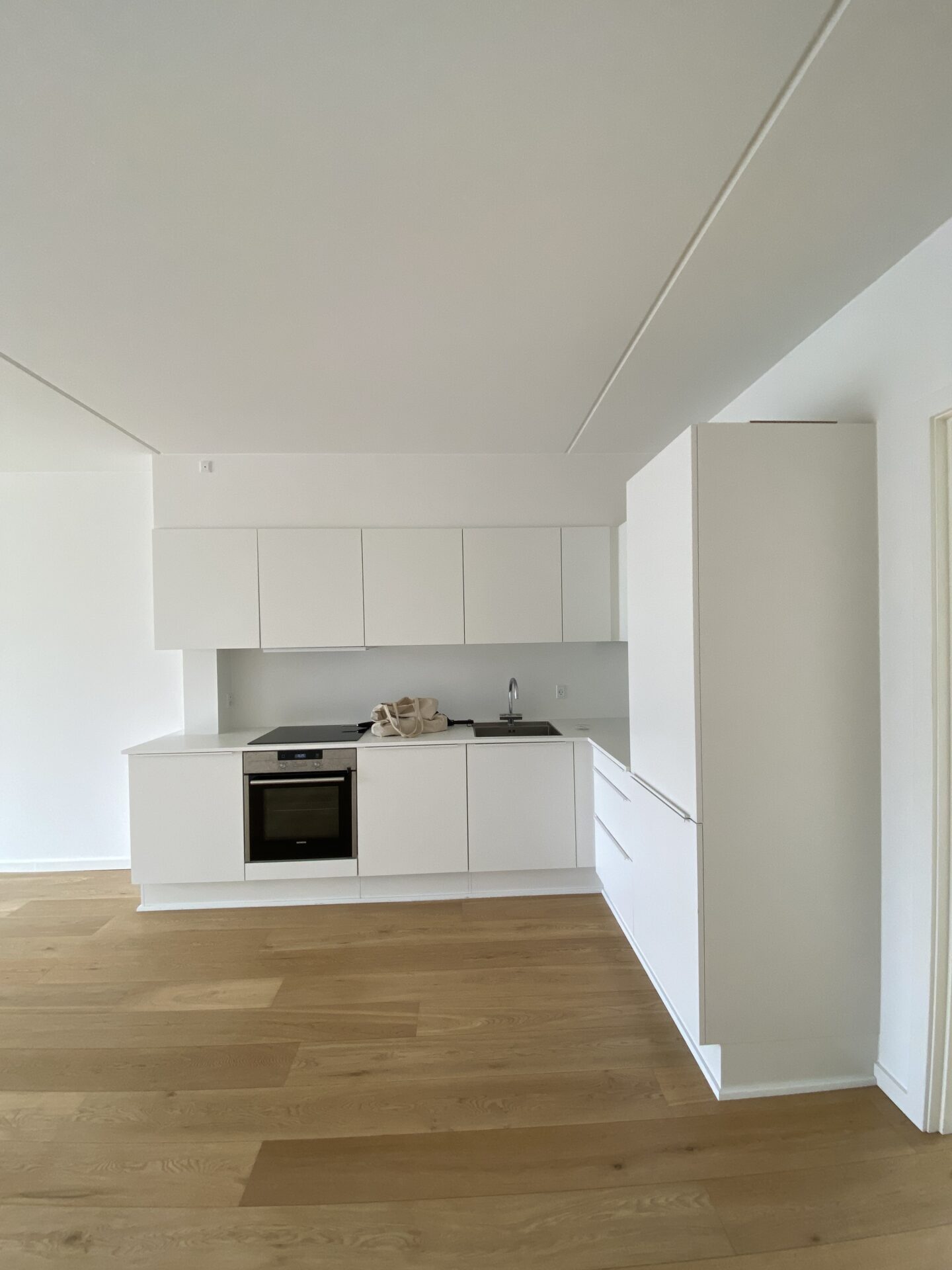 Hele lejligheden fremstår med flotte egetræsgulve og gulvvarme i alle rum.