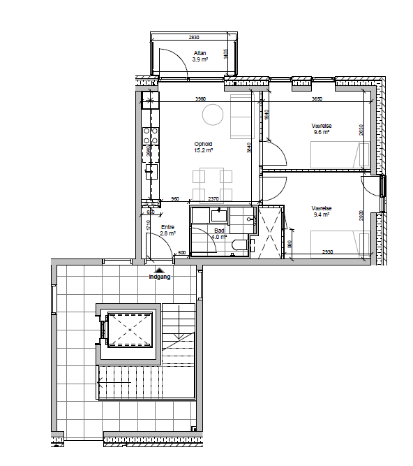 3-værelses, populær blandt par eller venner som ønsker at dele en lejlighed.