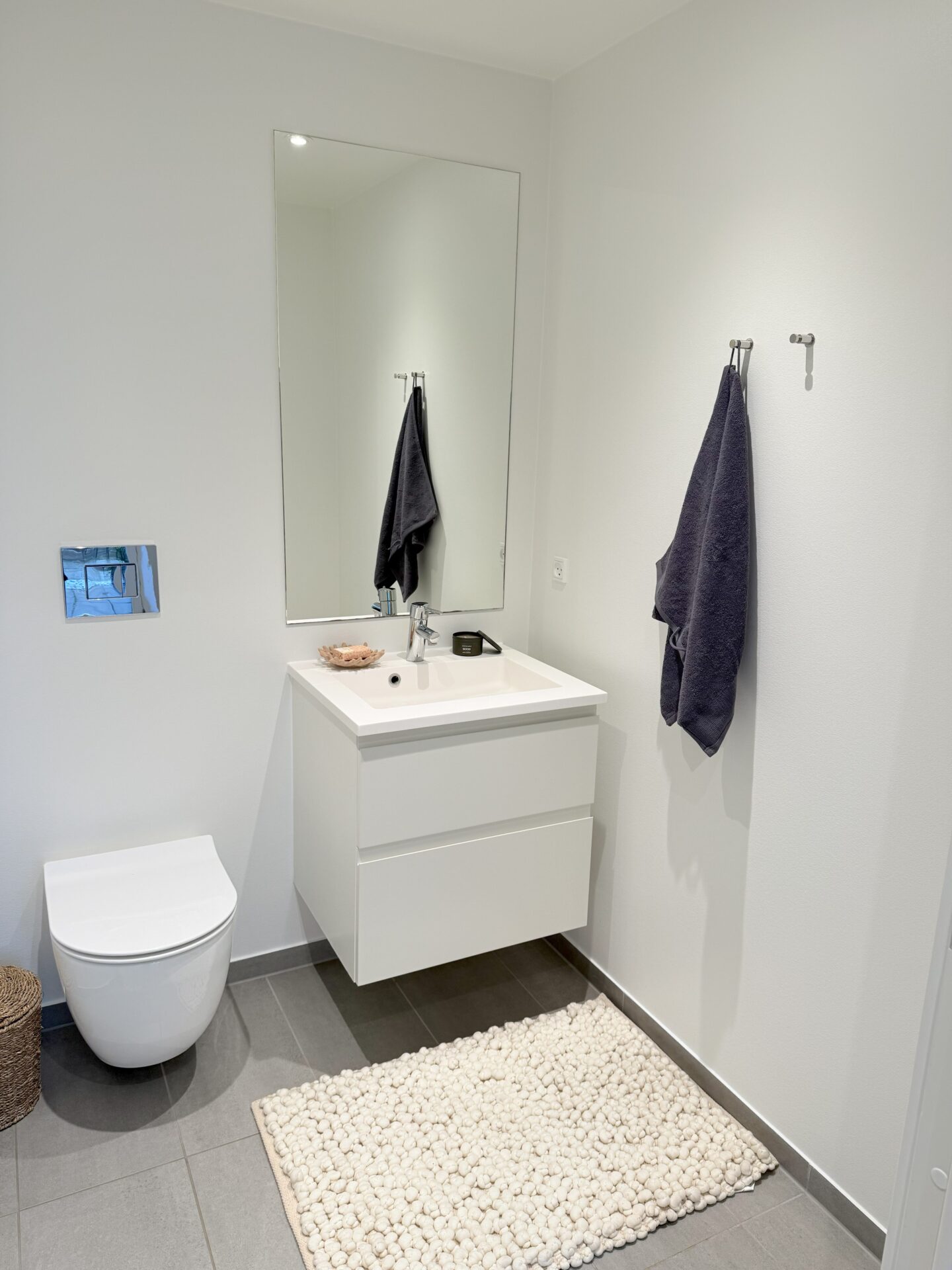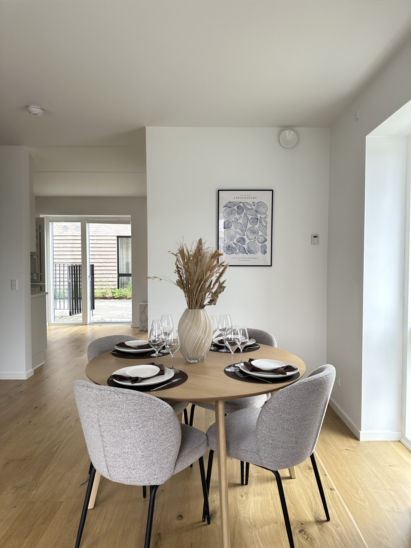 Boligen har et lyst og moderne køkken, og i stueetagen findes desuden et praktisk gæstetoilet.