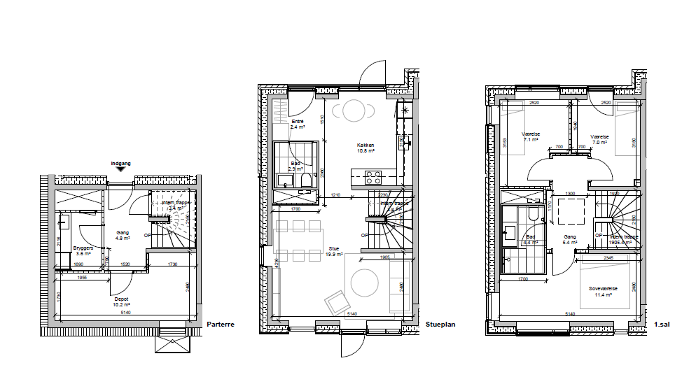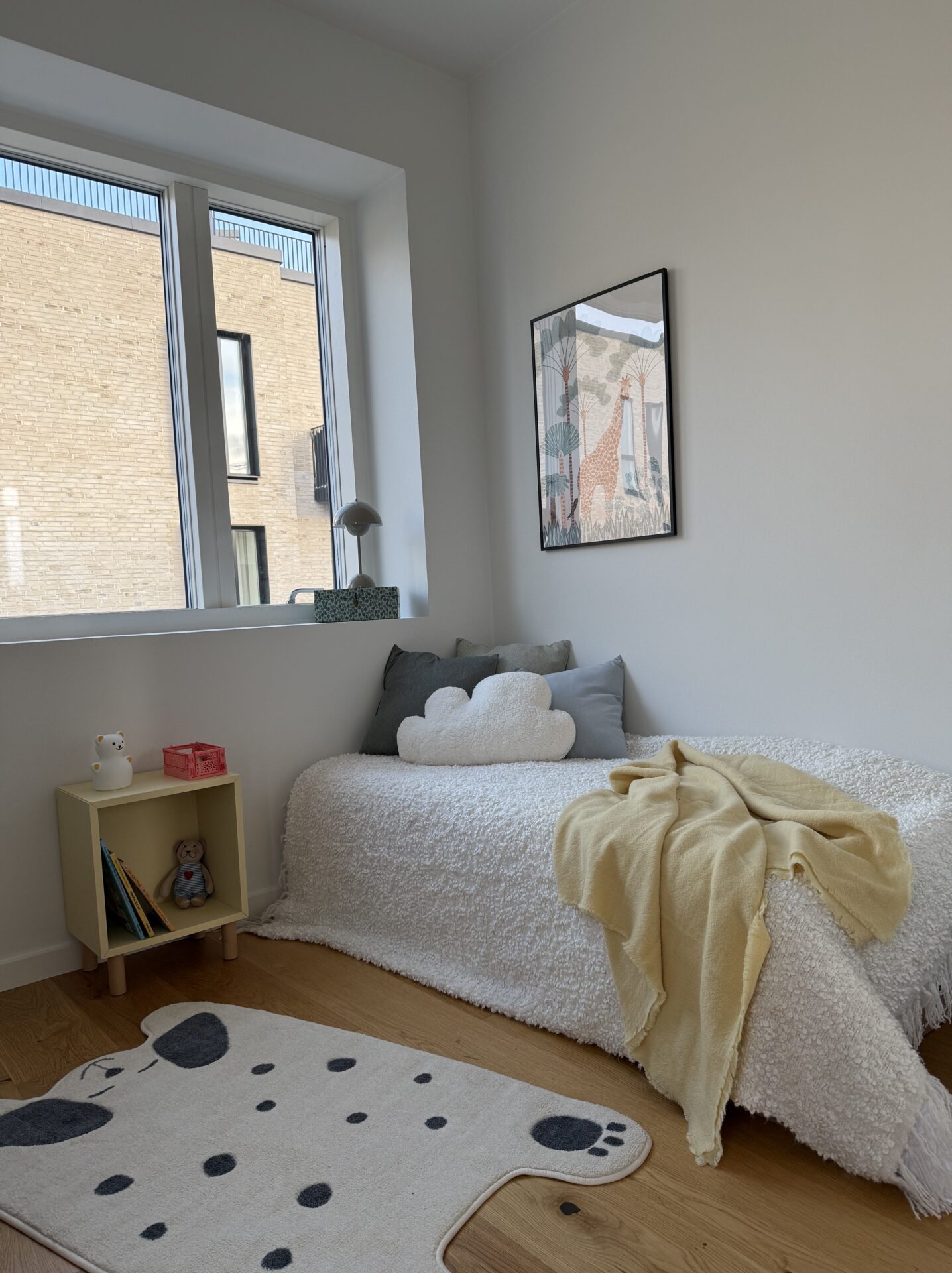 På øverste etage er der tre gode soveværelser samt et ovenlysvindue ved trappen, som giver et dejligt naturligt lys. Her er også boligens badeværelse.