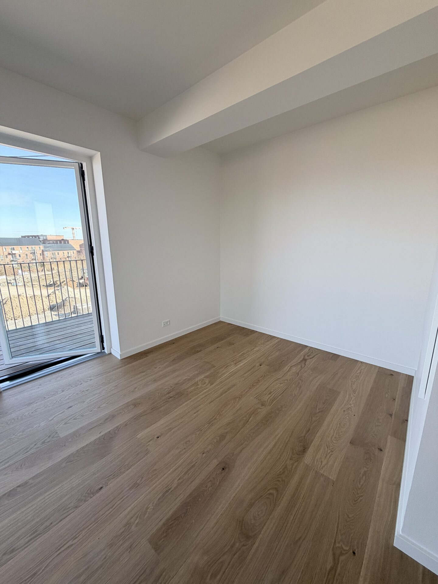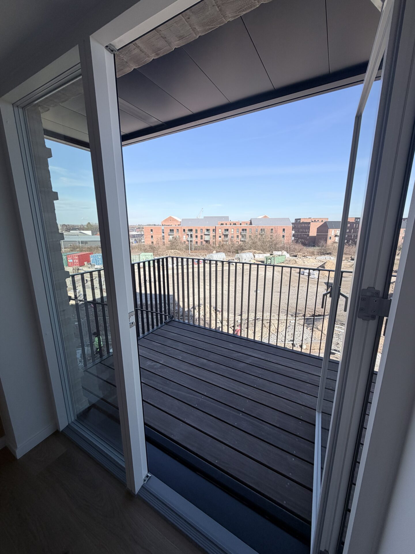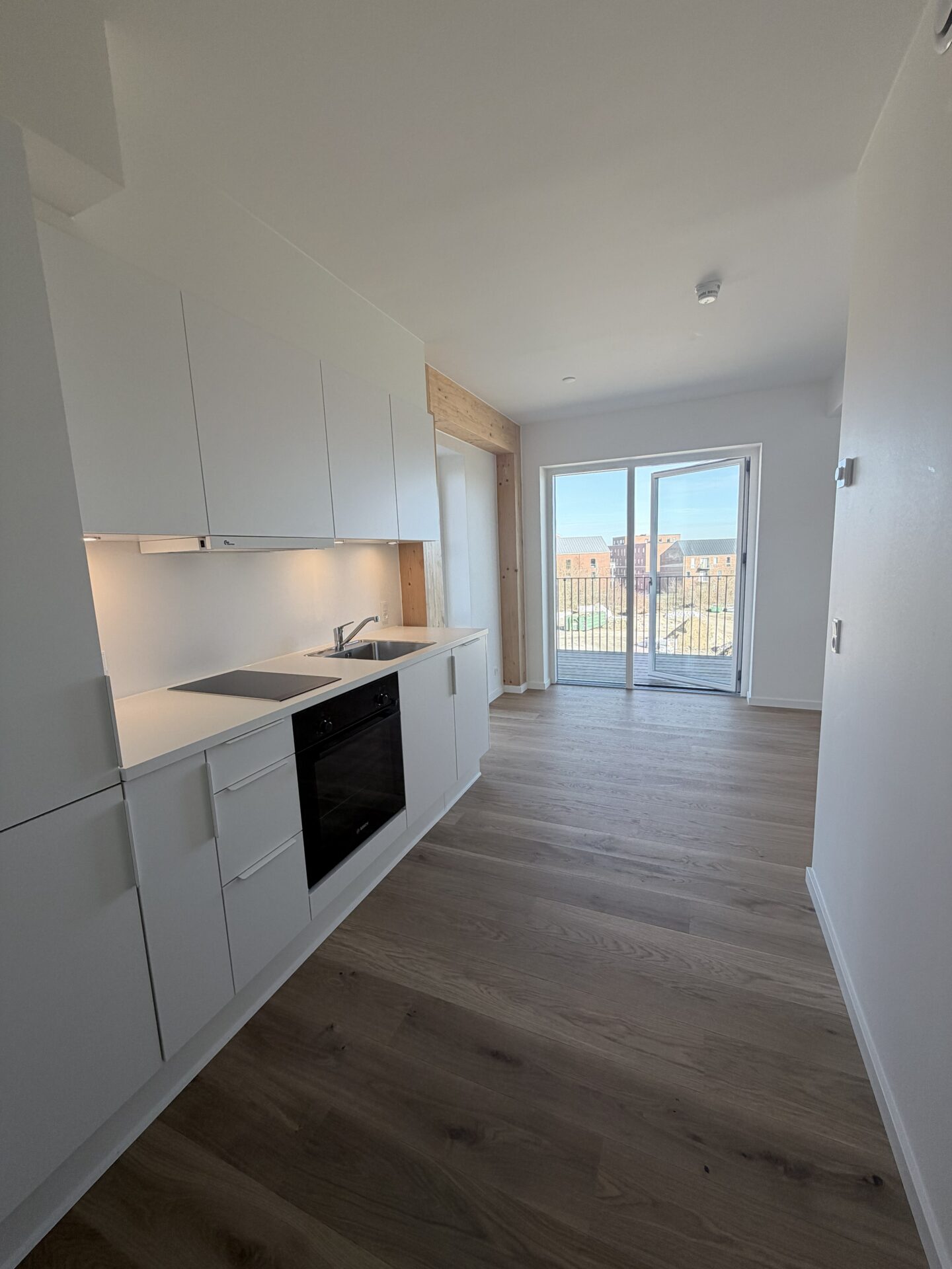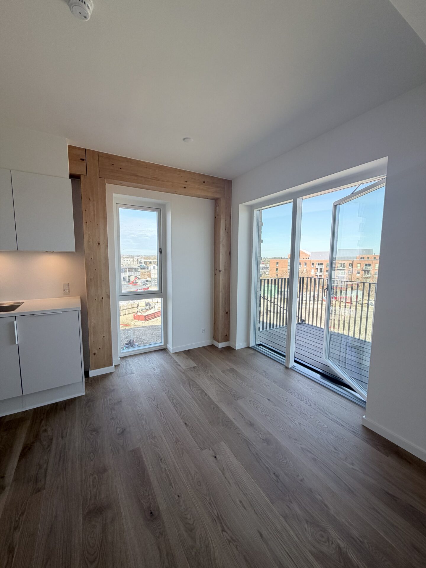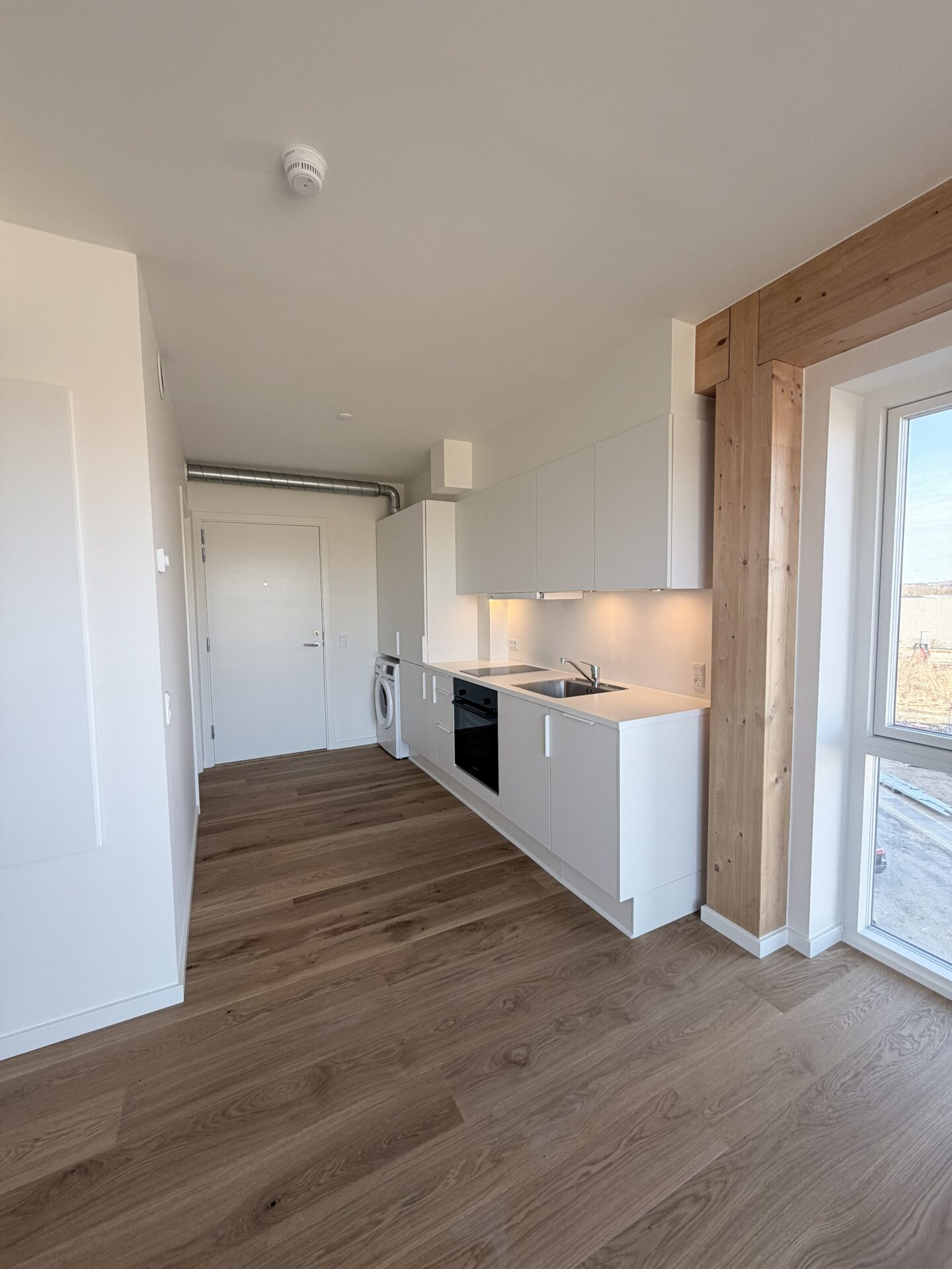 Vores nye byggeri på Tove Ditlevsens Gade rummer 58 nye lejligheder, som står indflytningsklare til marts 2026. Byggeriet er opført med i en bærende konstruktion i rent træ – Danmarks første. Inde i lejlighederne bliver de smukke, synlige træbjælker et helt særligt kendetegn og giver hjemmene en varm og naturlig atmosfære.