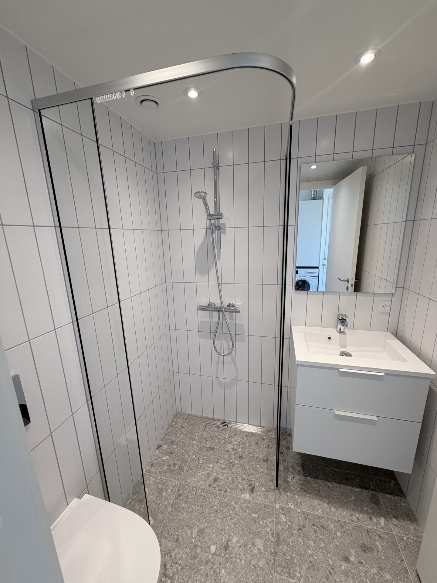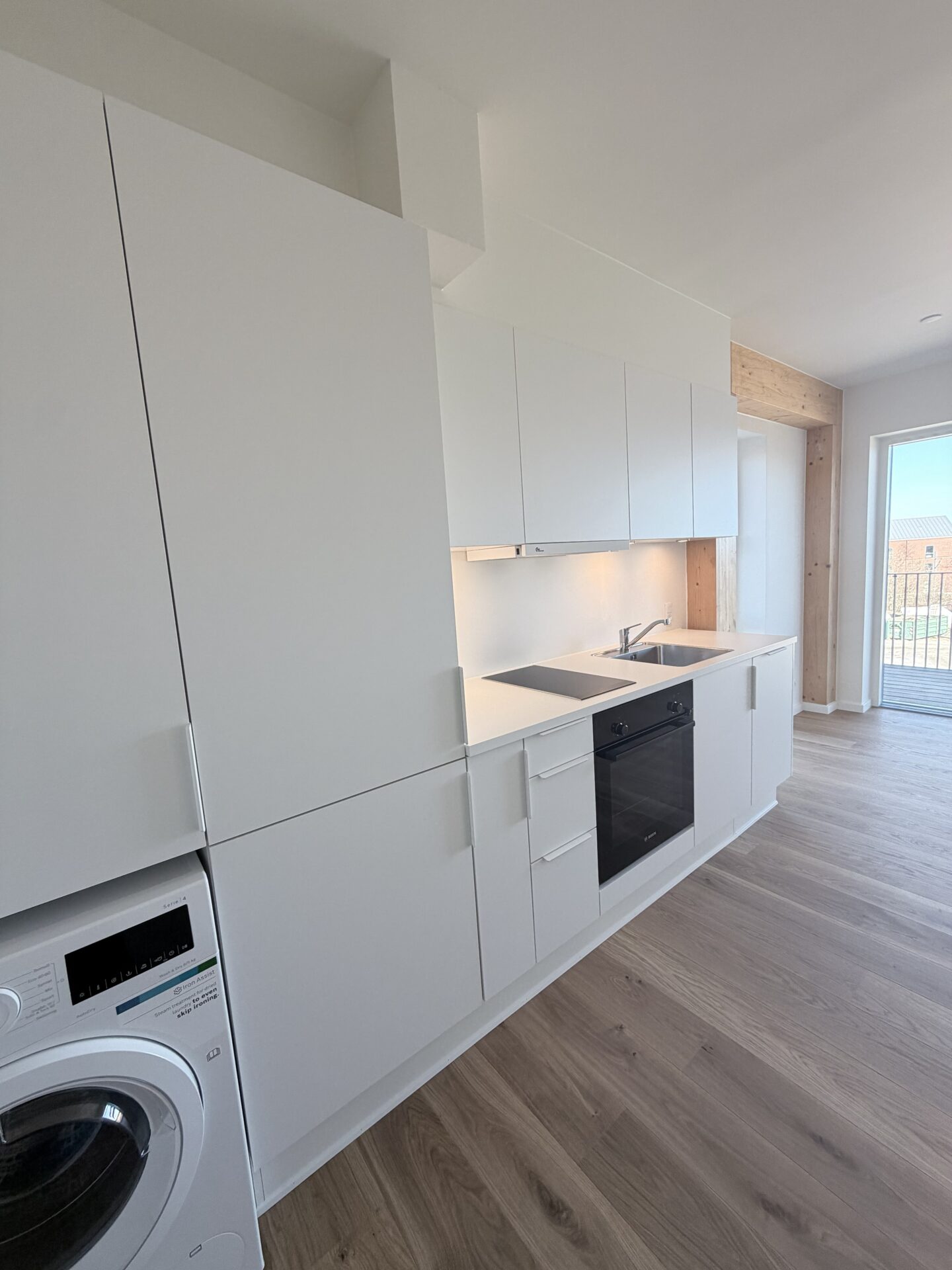 Lejligheden byder på et moderne og lyst køkken fra Svane med opvaskemaskine, samt en kombimaskine, samt plads til et hyggeligt spiseområde. Badeværelset er rummeligt og praktisk indrettet.