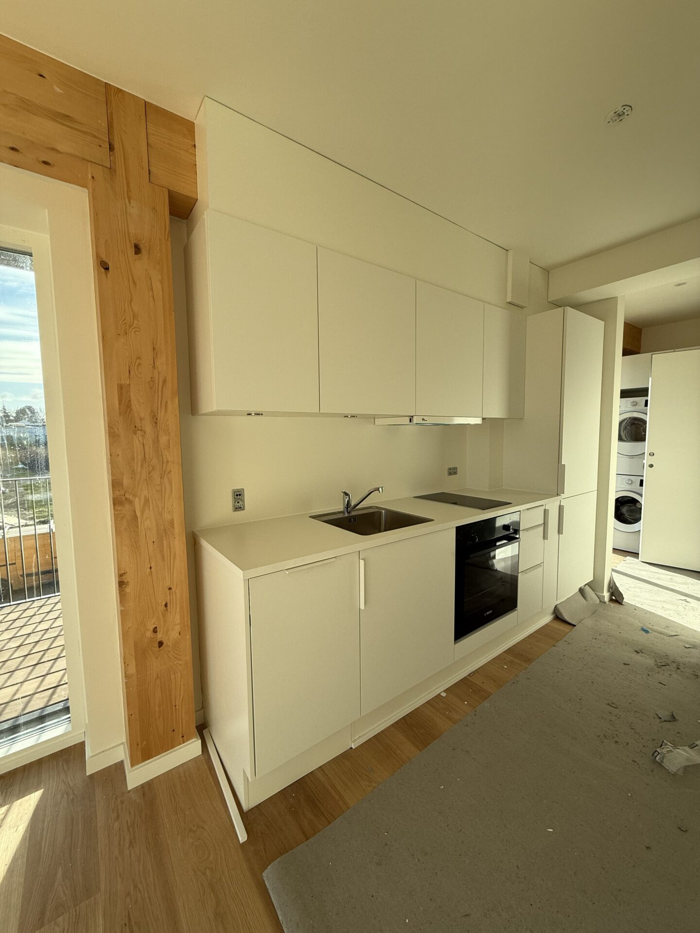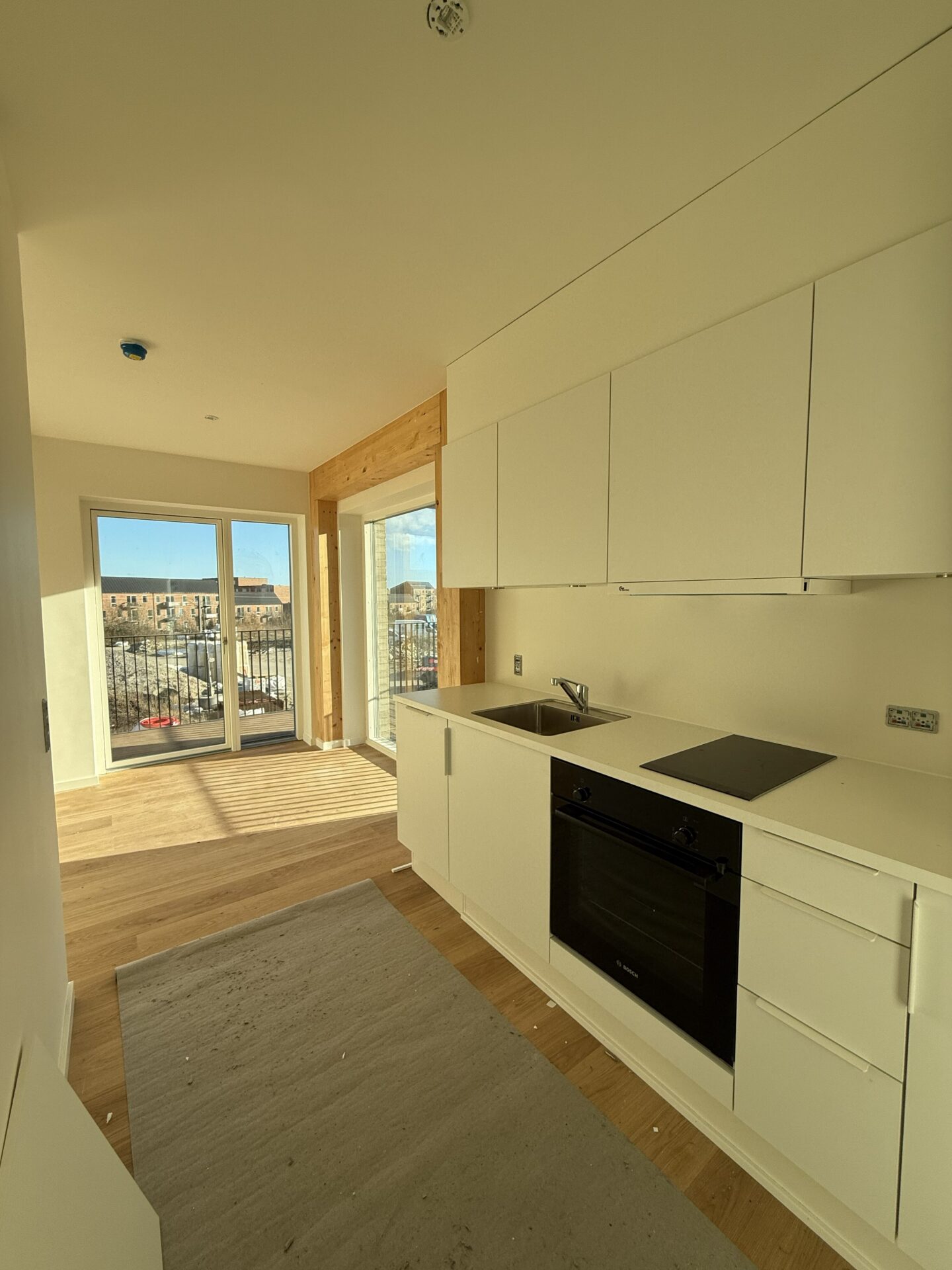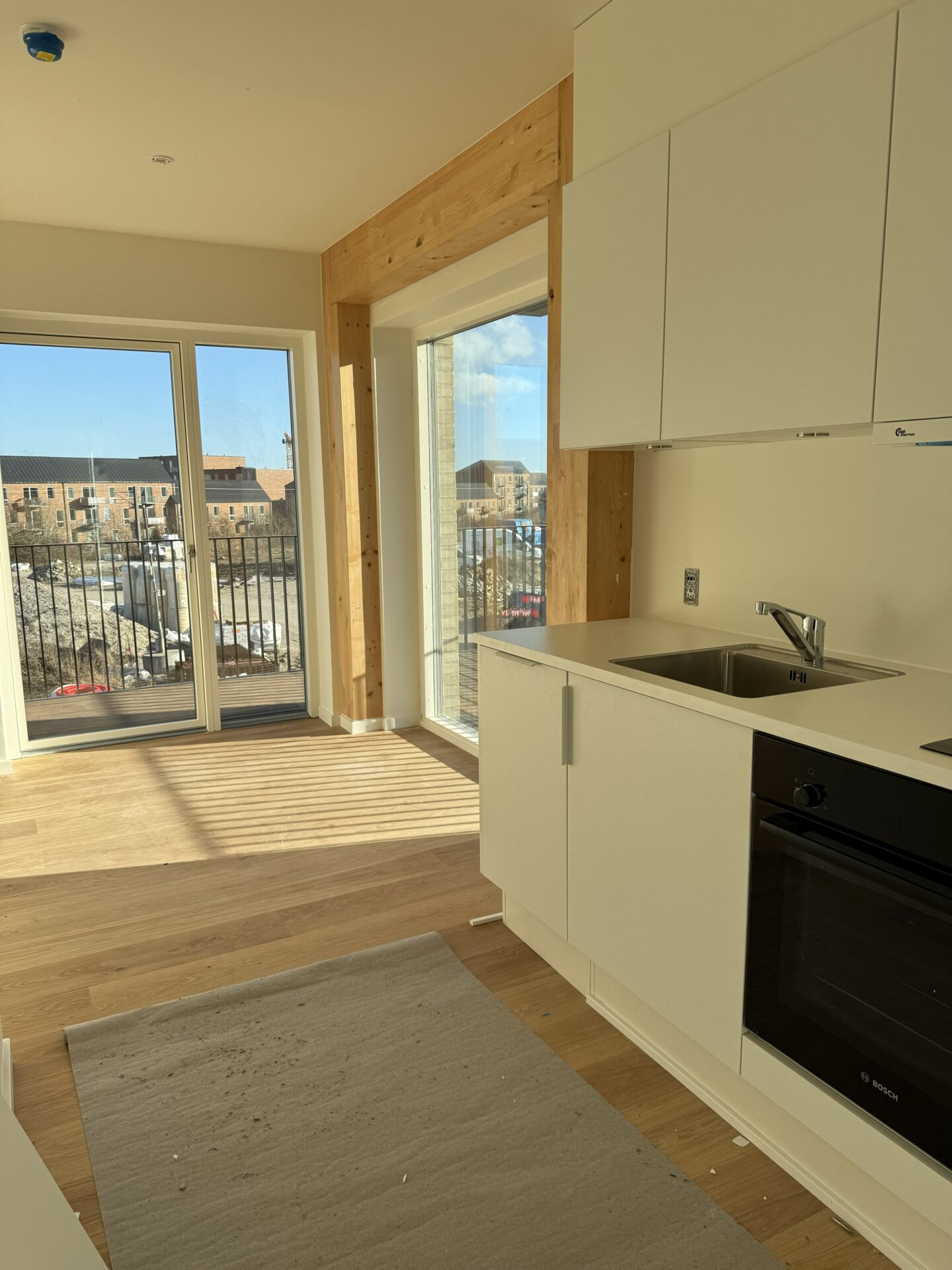 Vores nye byggeri på Tove Ditlevsens Gade rummer 58 nye lejligheder, som står indflytningsklare til marts 2026. Byggeriet er opført med i en bærende konstruktion i rent træ – Danmarks første. Inde i lejlighederne bliver de smukke, synlige træbjælker et helt særligt kendetegn og giver hjemmene en varm og naturlig atmosfære.