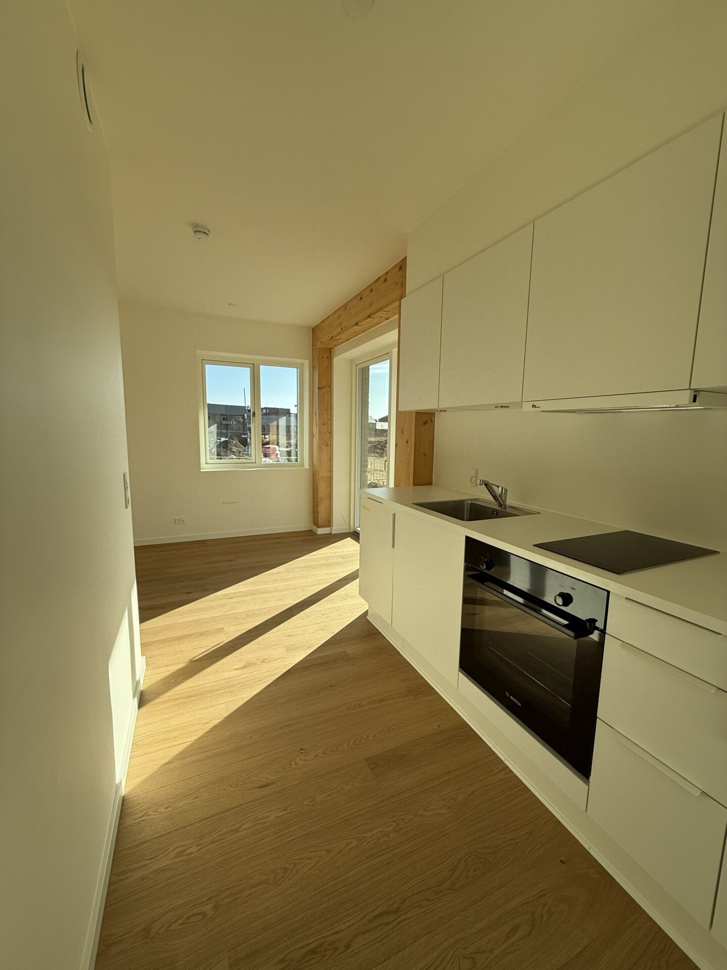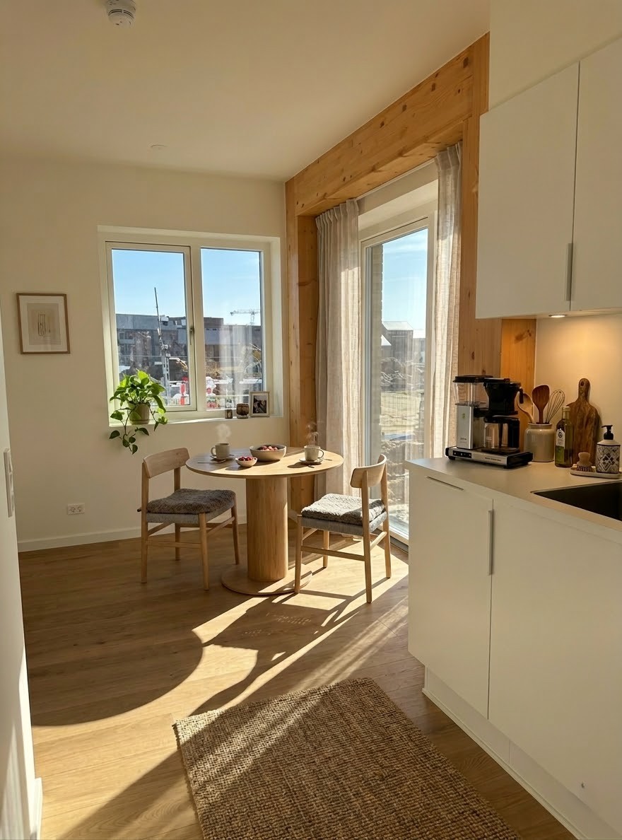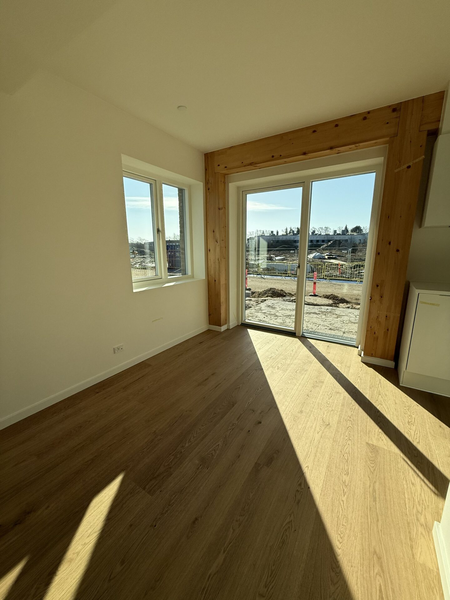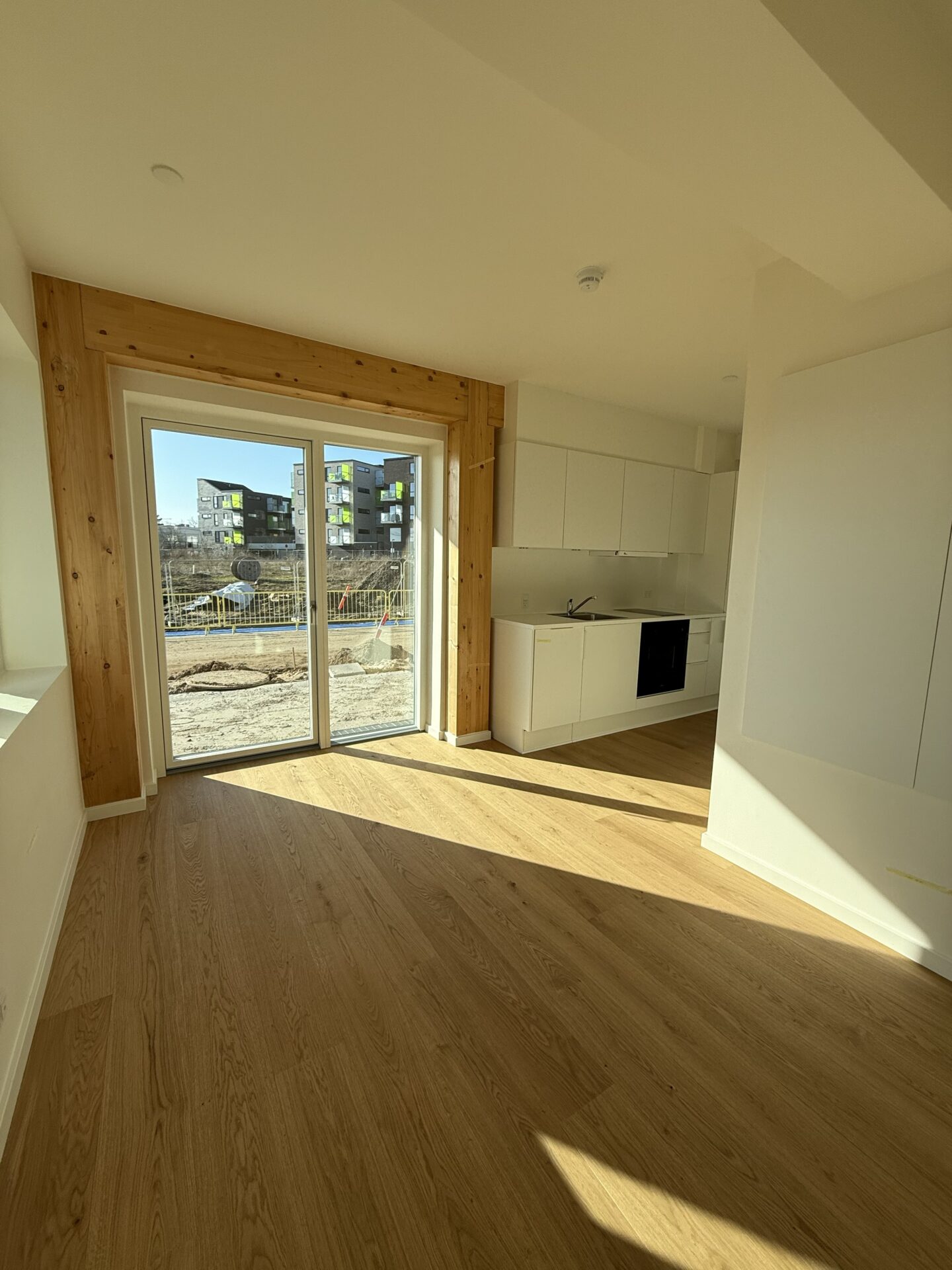 Vores nye byggeri på Tove Ditlevsens Gade rummer 58 nye lejligheder, som står indflytningsklare til marts 2026. Byggeriet er opført med i en bærende konstruktion i rent træ – Danmarks første. Inde i lejlighederne bliver de smukke, synlige træbjælker et helt særligt kendetegn og giver hjemmene en varm og naturlig atmosfære.