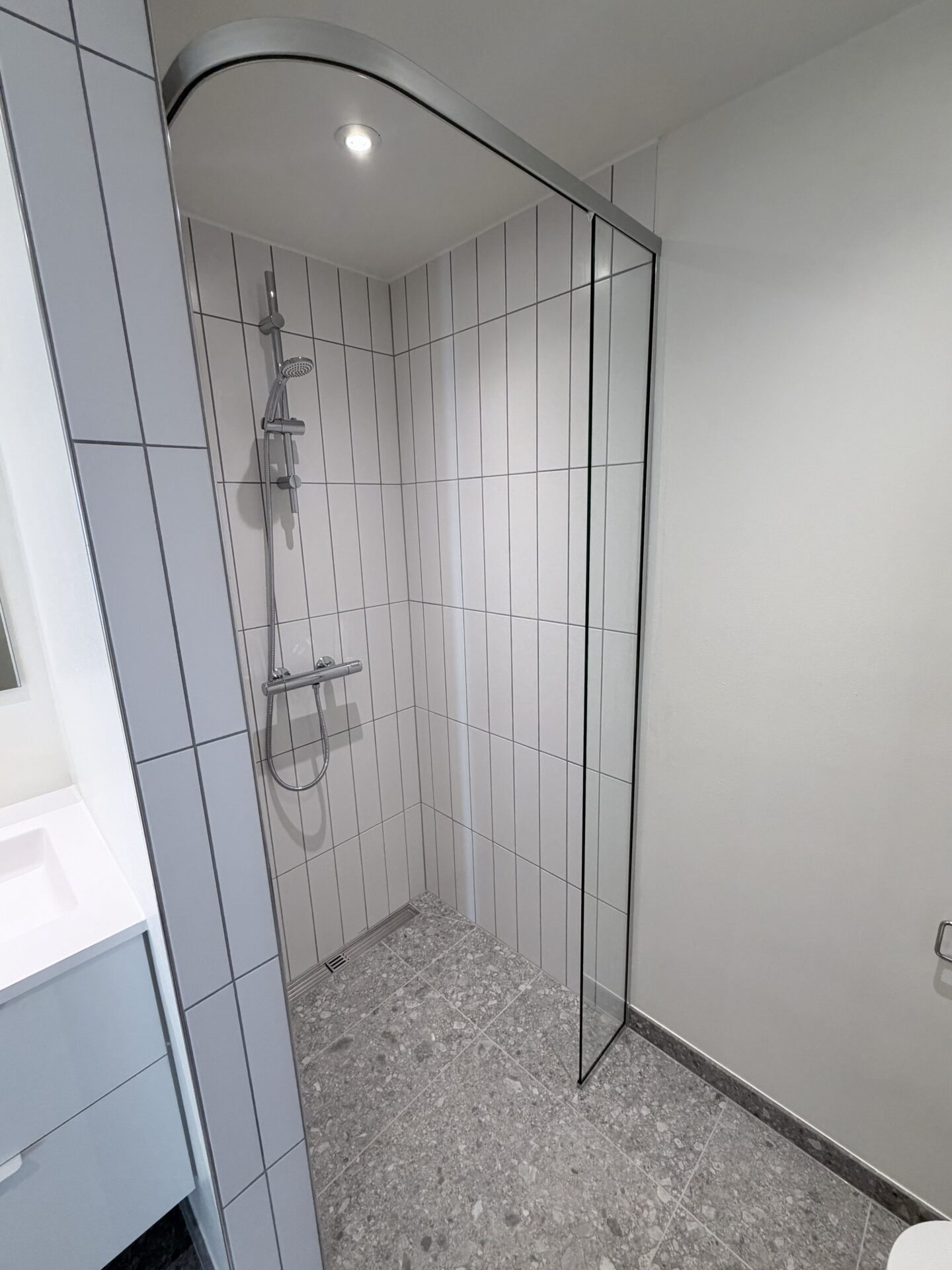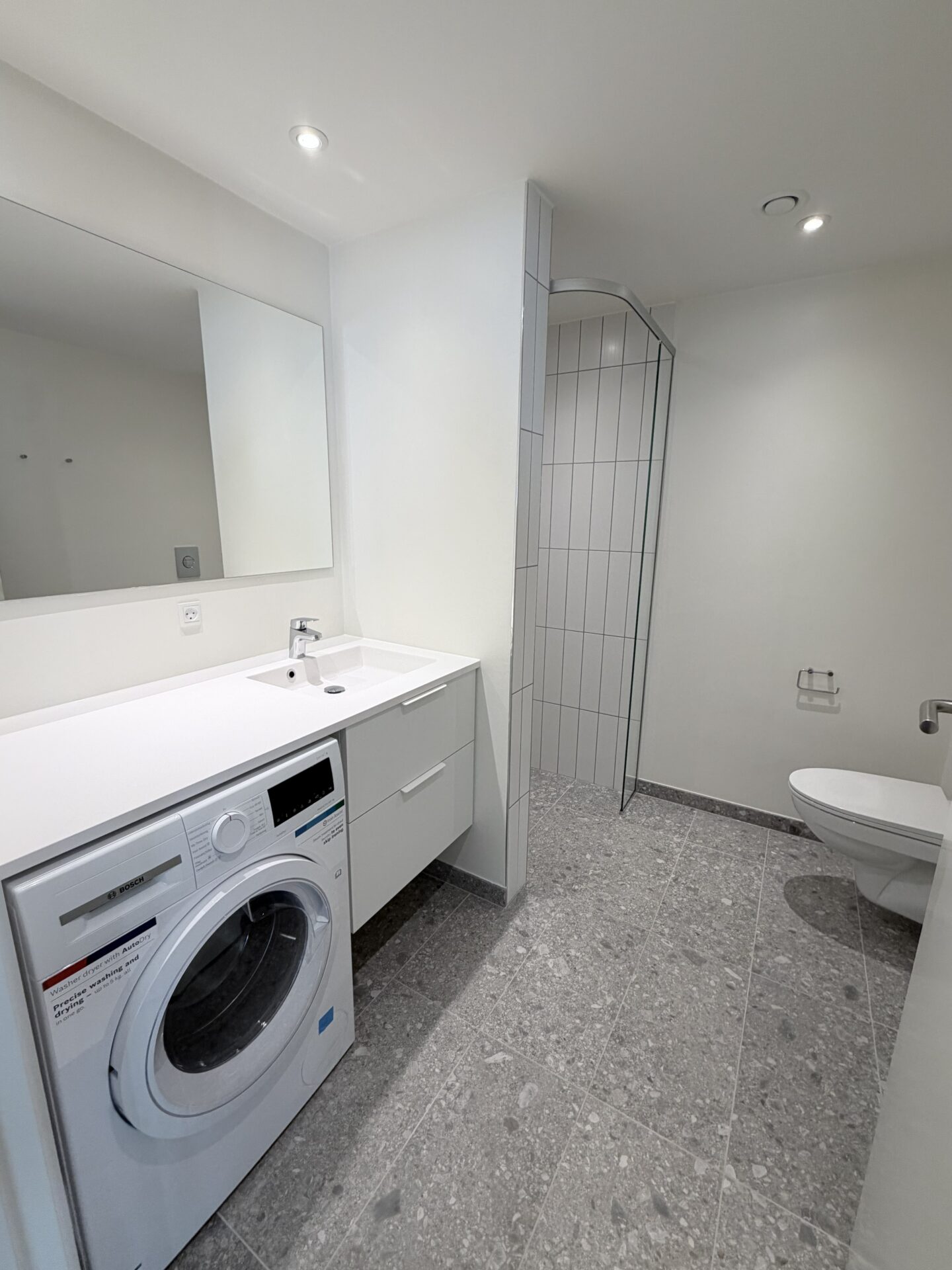 Lejligheden har selvfølgelig også et skønt rummeligt badeværelse med kombi vaske tørre maskine.