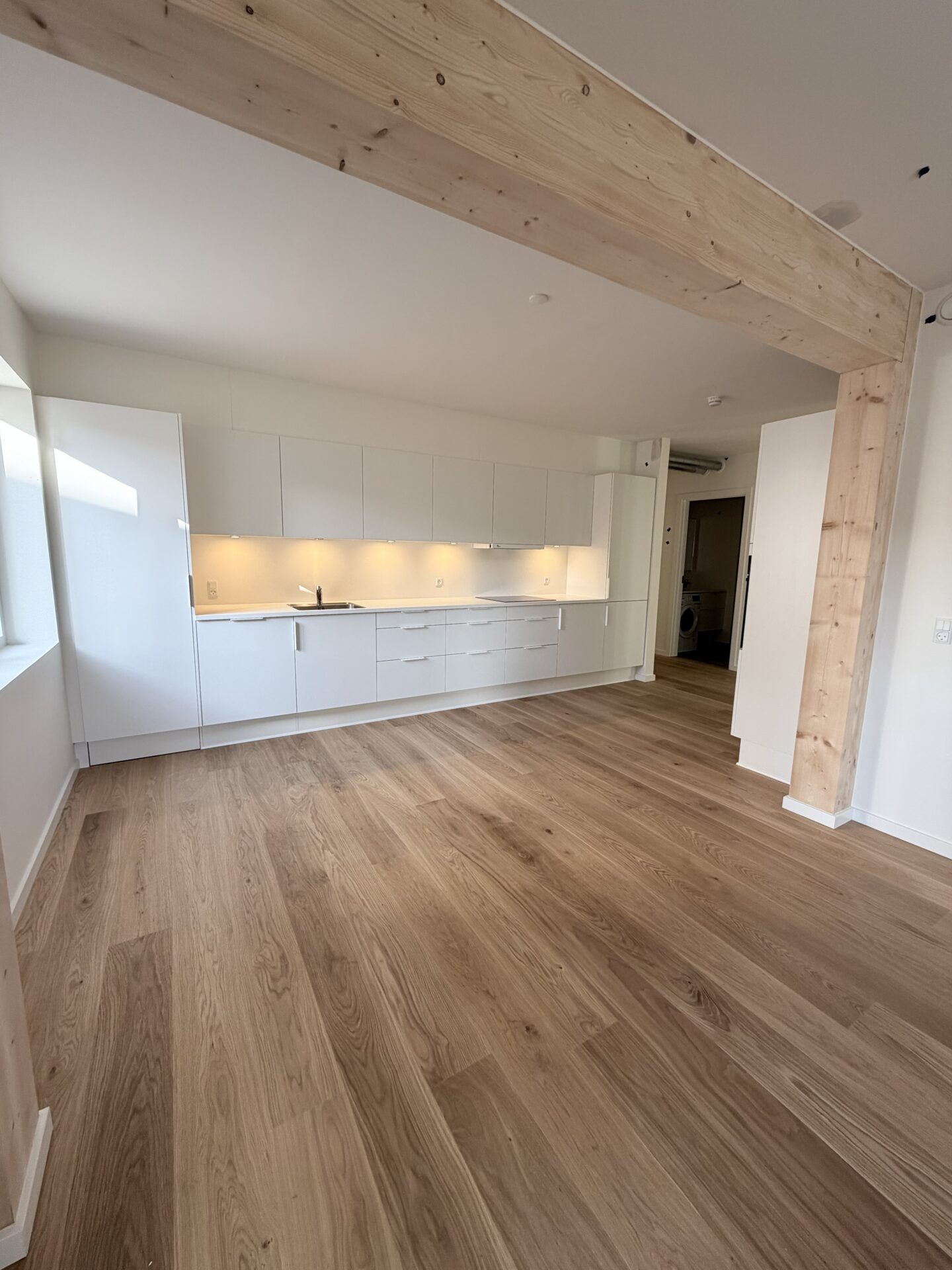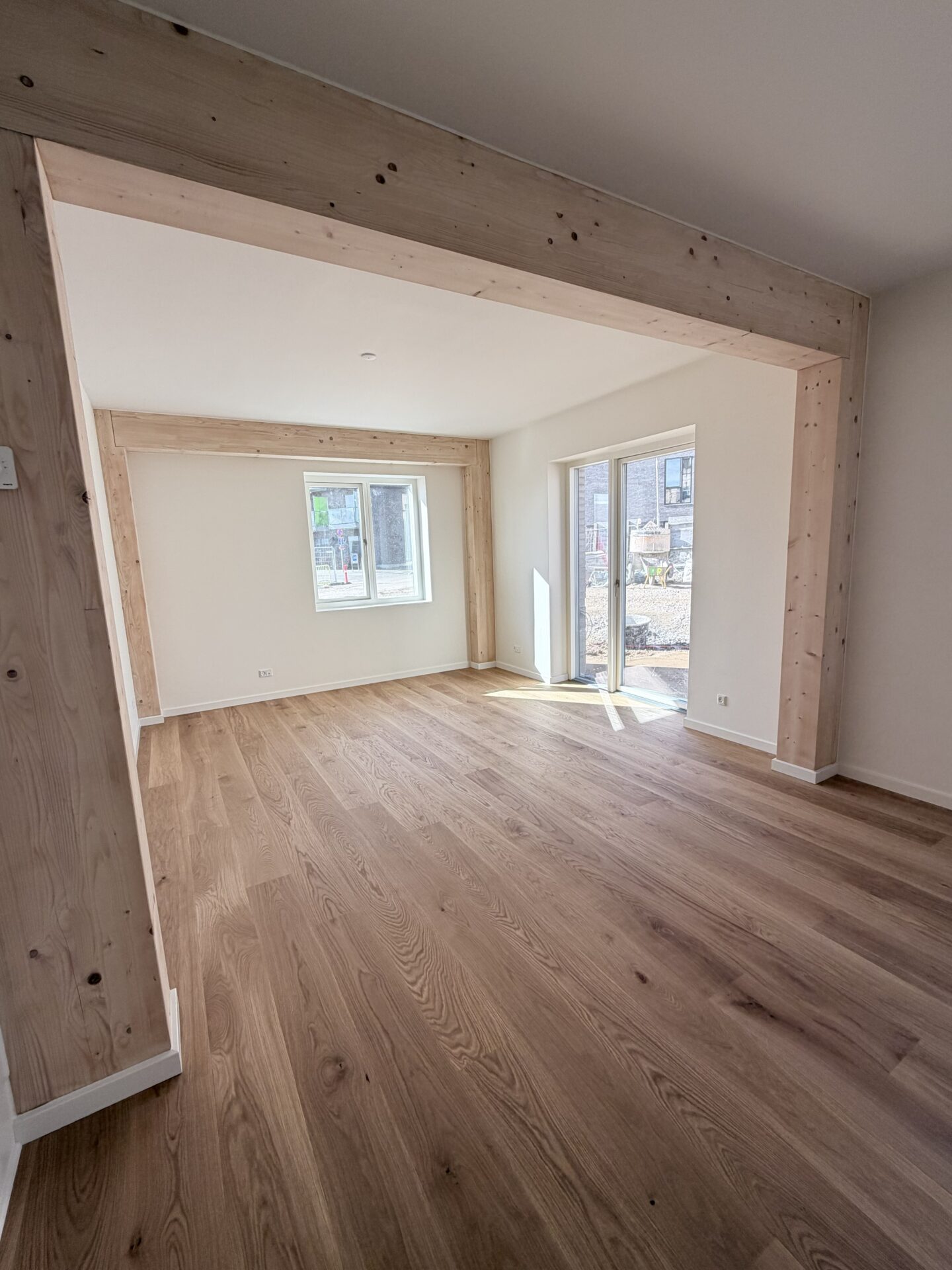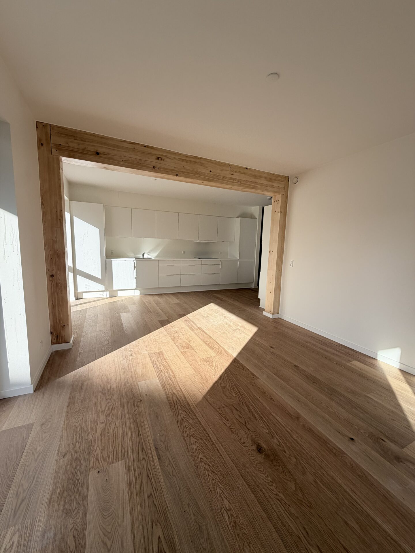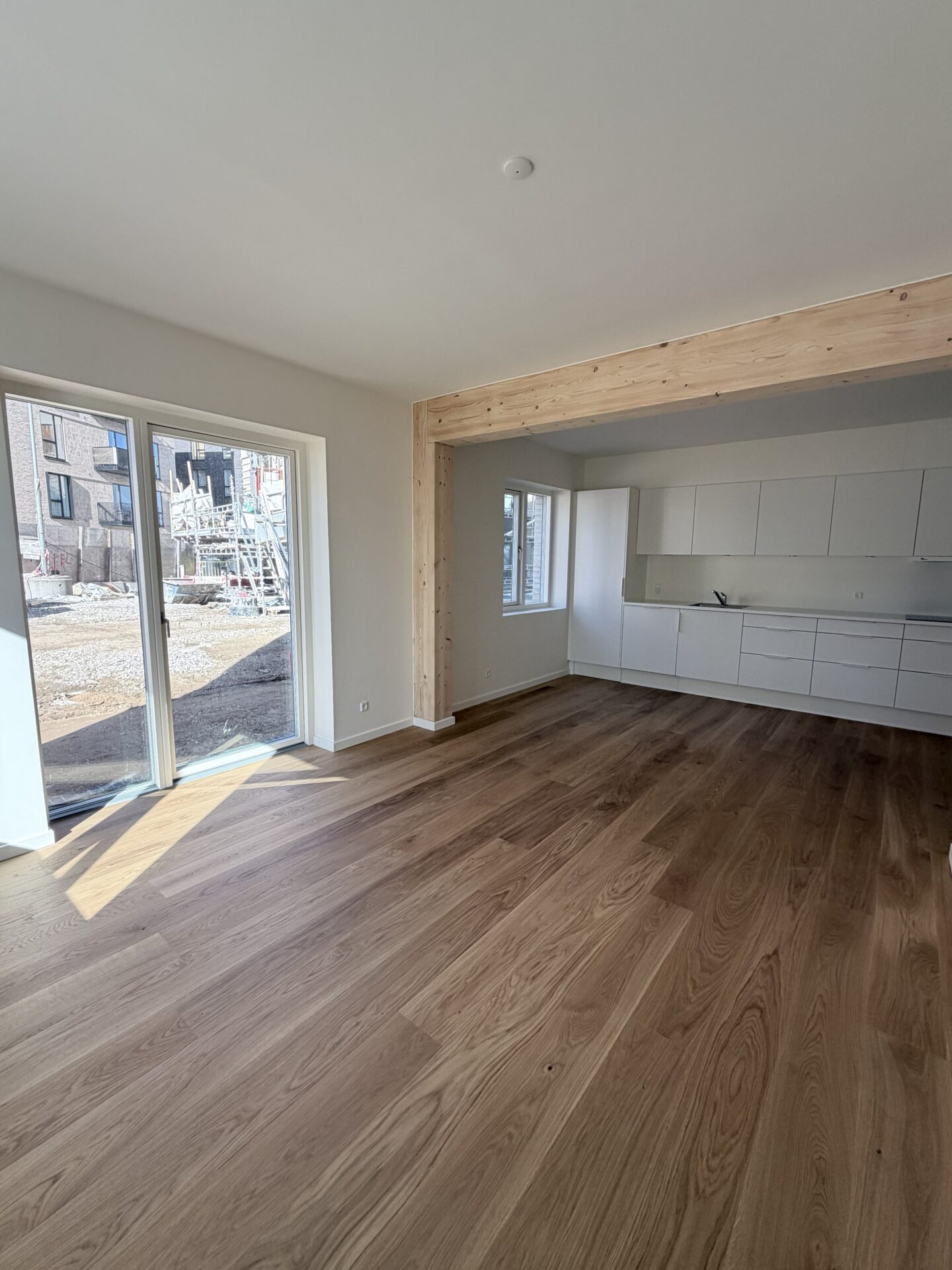 Vores nye byggeri på Tove Ditlevsens Gade rummer 58 nye lejligheder, som står indflytningsklare til marts 2026. Byggeriet er opført med i en bærende konstruktion i rent træ – Danmarks første. Inde i lejlighederne bliver de smukke, synlige træbjælker et helt særligt kendetegn og giver hjemmene en varm og naturlig atmosfære.